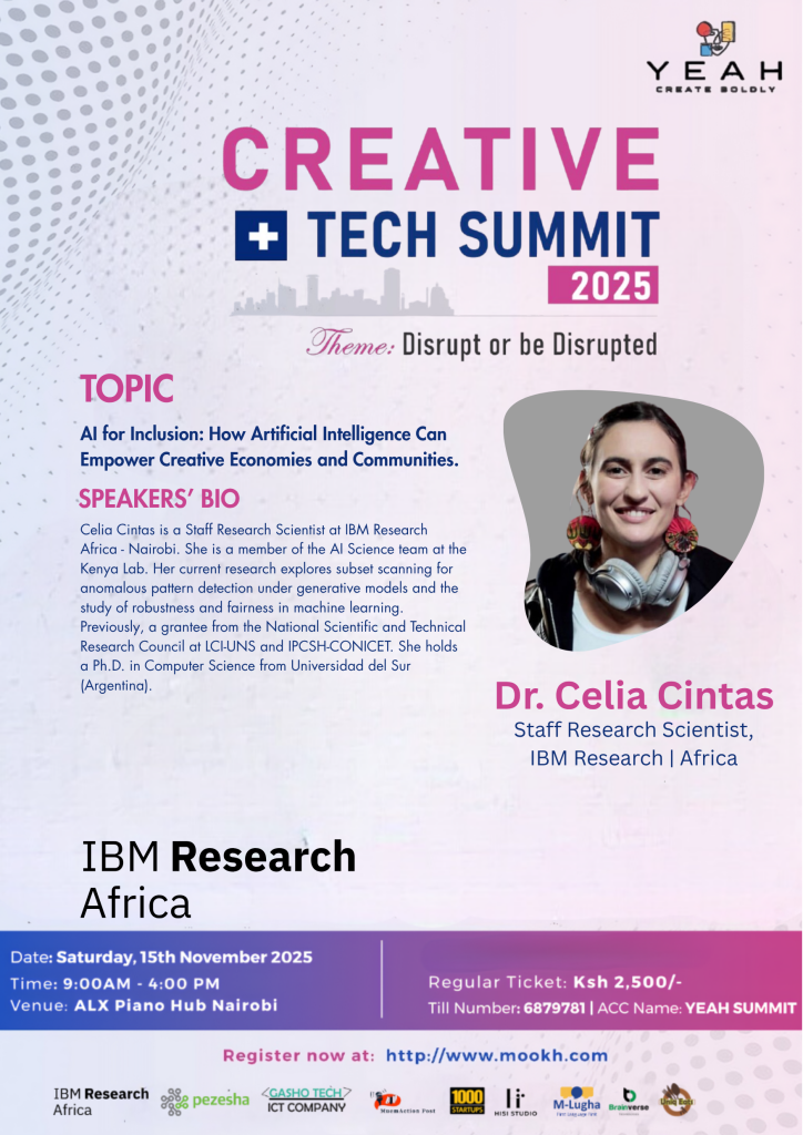 My name is Celia Cintas (🇦🇷), I’m a Research Scientist at IBM Research Africa – Nairobi. I’m a member of the AI Science team at the Kenya Lab.